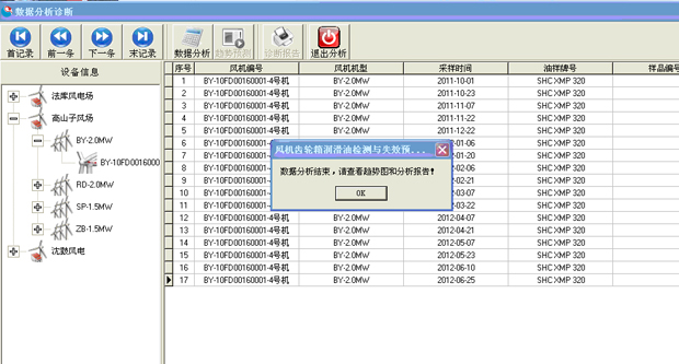 該預警平臺通過檢驗風力發電機齒輪箱潤滑油的成分變化,以診斷出該設備是否存在異常,是否需要維修和更換零件,從而避免發生大的設備故障,節省成本、防患未然,為風機事前維修提供可靠理論依據。該平臺通過分析油檢中金屬成分、含量、顆粒度、顆粒形態等數據(奧吉娜油檢中所得)判斷風機內部磨損程度、磨損部位,從而判斷風機癥結所在。