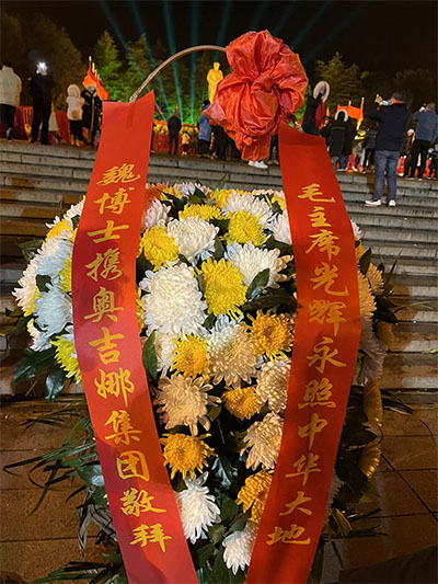 奧吉娜集團總裁魏國平博士選派員工赴韶山沖,代表奧吉娜集團向紀念毛澤東銅像敬獻挽聯花籃祭拜偉人,