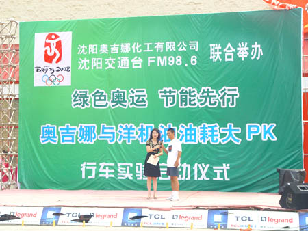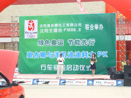 奧運(yùn)倒計(jì)時(shí)一周年之際,由沈陽(yáng)奧吉娜化工有限公司與沈陽(yáng)交通臺(tái)聯(lián)合舉辦的“綠色奧運(yùn)、節(jié)能先行,奧吉娜與洋機(jī)油萬(wàn)里油耗大PK”行車實(shí)驗(yàn)拉開了序幕,2007的8月24日上午,舉行了啟動(dòng)儀式。